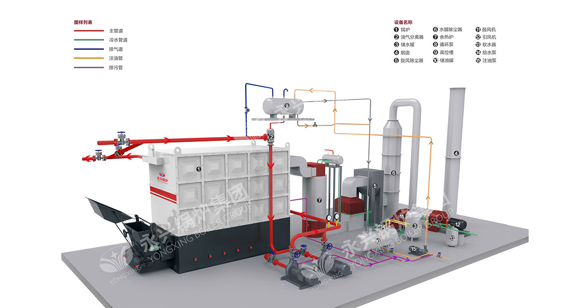 YLW型生物质导热油炉是永兴锅炉研发的一款强制循环链条炉排锅炉。它是以环保能源-生物质为燃料,以导热油为介质的一种新型供热设备,有上部本体和下部链条炉排组成,本体前部为炉膛辐射受热面,中部为蛇形管束组成的受热面,后部为对流面,运行过程中,锅炉可以根据实际要求进行精确的温度调节,能够满足客户不同的要求。更好的是锅炉具有完善的运行控制系统和安全监测装置,使得锅炉操作起来更加简单、方便。较好的是此锅炉的各类排放指标均低于国家《锅炉大气污染物排放标准》规定,而且运行成本与燃煤相比,节省5%-10%,因此,是替代燃煤锅炉的产品。